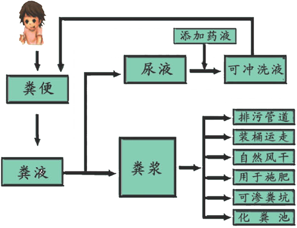 4. 在臨時安放的地方,可以用數個塑料周轉桶和帶糞箱的手推車,把排污管接入塑料周轉桶和糞箱中排放,當數個周轉桶都滿時,可以集中運走,用于農作物施肥或倒入污水管道中或化糞池內。