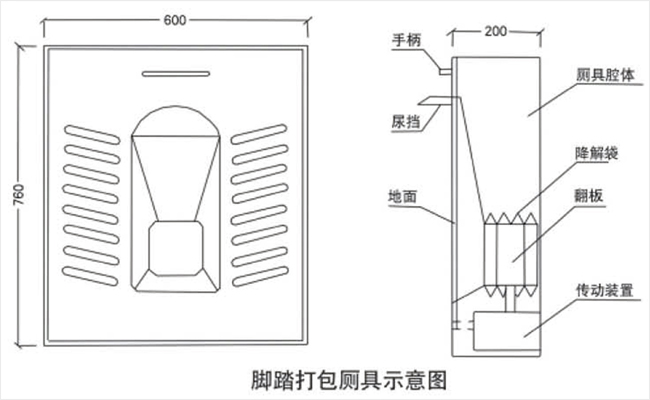 1)廁具外形尺寸:長760 ×寬600 ×高200 ( mm ) ;